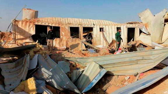 Fighters from the Kataeb Hezbollah, or Hezbollah Brigades militia, inspect the destruction of their headquarters in the aftermath of a U.S. airstrike in Qaim, Iraq, Monday, Dec. 30, 2019. The Iranian-backed militia said Monday that the death toll from U.S. military strikes in Iraq and Syria against its fighters has risen to 25, vowing to exact revenge for the “aggression…